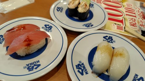 雨模様で涼しくババヘラアイスも出てなかったので、レース後はそのまま帰還して次女希望でくら寿司へ。