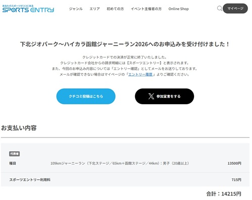下北ジオパーク~ハイカラ函館ジャーニーラン2026にエントリーしました
