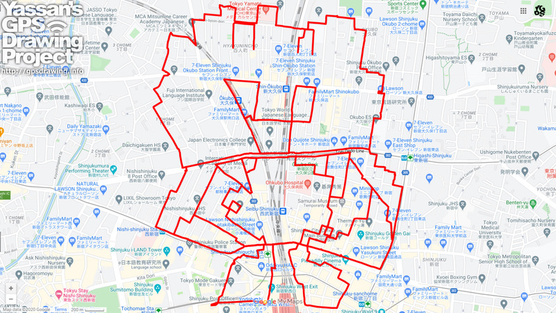 大久保駅のあたりをグルグルして右目を描いて行きます。