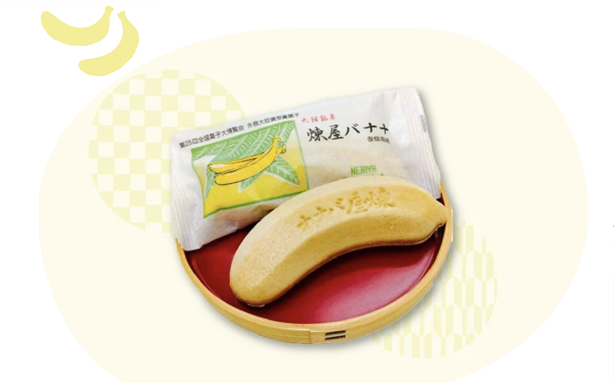 バナナの形のモナカの中に、バナナ風味の白あんが入っています。
