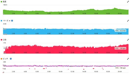 その後の下り基調で戻すかとシンシュウエナジー食ってストライド広げるものの、右膝が気になり上げきれないorz