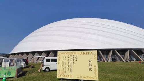 日課のテレビ体操後に出発したけど、今年は渋滞もなくタクミアリーナ前の駐車場にすんなり入れました。