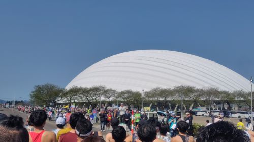 アップしながらドームに戻り、トイレ入ってから招集場所に向かいました。