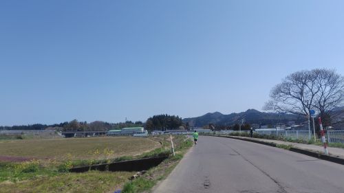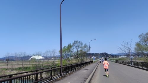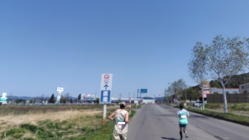 女子ランナーに抜かれ、いいピッチで走ってるなーと真似しつつ、コメリパワーの看板見ながらパワー注入www