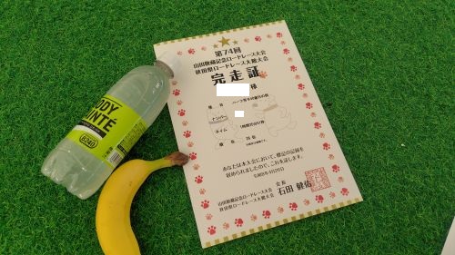 計測チップ回収してもらって、ボディメンテとバナナを受け取ったら表彰式してましたな。