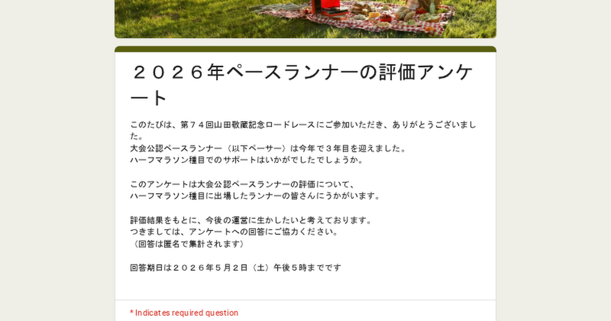 ペースランナーの評価アンケート依頼がありましたので、参加された皆様回答にご協力いただければと思います。